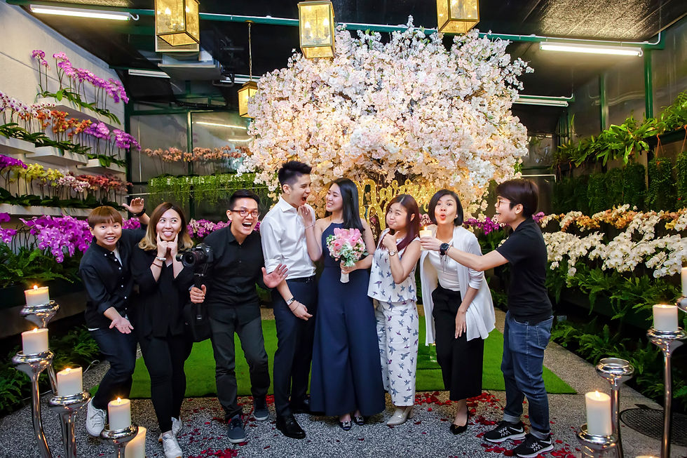 On the big day, the KFT team arranged two proposal venues: One is filled with beautiful helium balloons in the restaurant for the staged proposal; another venue is a room decorated with a walkway of lit candles and a huge cherry blossom tree adorn with romantic twinkly fairy lights at the Orchid Conservatory room - for the real deal!