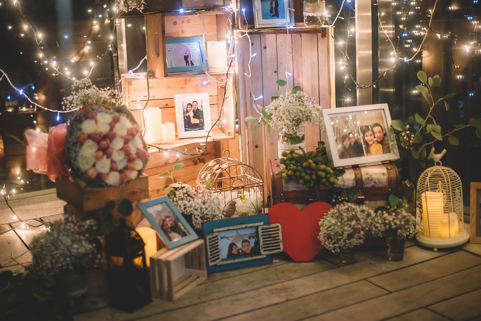 We learn about this love story and it touched our hearts, and sincerity and affirmation are what Caryn needs. On this wonderful day, the team set up the proposal venue on an open roof deck on the 23rd floor. The fairy lights bling as bright as the stars on that night, shining over the memories they’ve shared together, with a beautiful bouquet and an exquisite engagement ring waiting to be put on. Lye hopes this sincerity is well expressed that her unconditional love and compromises for him are very much appreciated; he vows to love her now and his entire remaining lifetime.