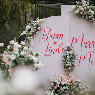 During the proposal day, Brian and Linda walking by the road side, Linda was surprised a lady walk towards her and gave her a small gift; a pillow printed with her favourite’s pet and a love letter. She probably has a hint in mind, she was then blindfold to proposal venue. We believe the journey to proposal venue would feel nervous and curious.