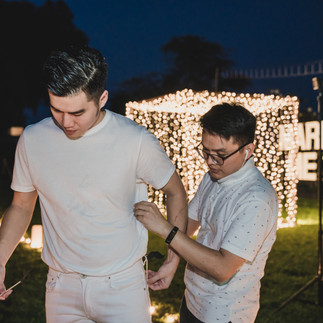 Kit vowed to Elie with a song, standing before an interactive projector screen. He then takes Elie by her hand and kneels before her to ask the big question. Our mission night ends with a magnificent waterfall firework show, and their lives together begin right here, in this successfully planned (proposal) "trip"!